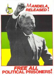 This is an offset litho poster in black, green, yellow and red with a picture of Nelson Mandela.