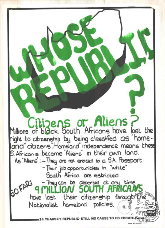 This is a silkscreened poster in black and green on white issued by National Union of South African Students (NUSAS) in Repulic Day. |