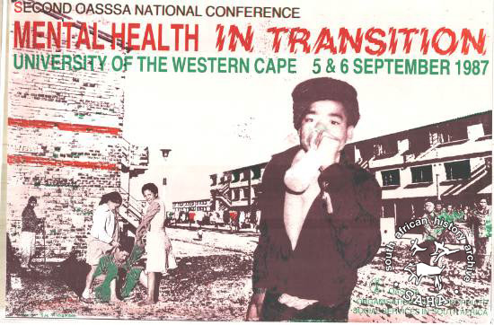 This is an offset litho poster in brown, green and orange . It was issued by the Organisation of Appropriate Social Services in South Africa (OASSSA) calling for a second national conference on mental health |