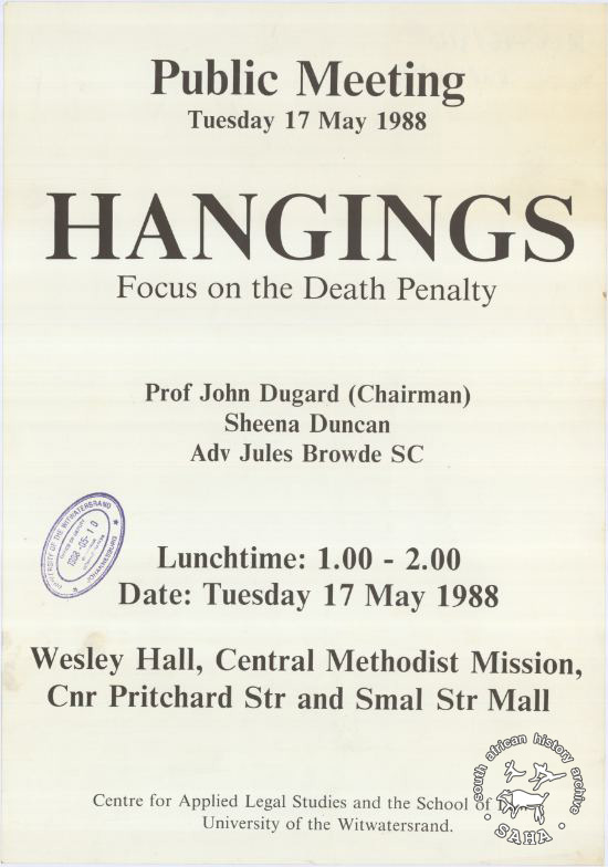 Public Meeting : Tuesday 17 May 1988 : HANGINGS : Focus on the Death Penalty |