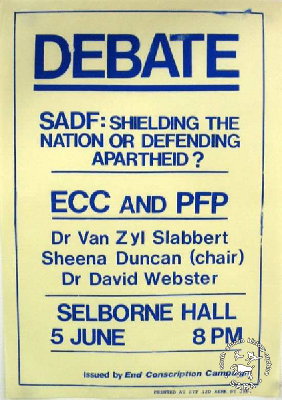 DEBATE : SADF: SHIELDING THE NATION OR DEFENDING APARTHEID? : ECC AND PFP |