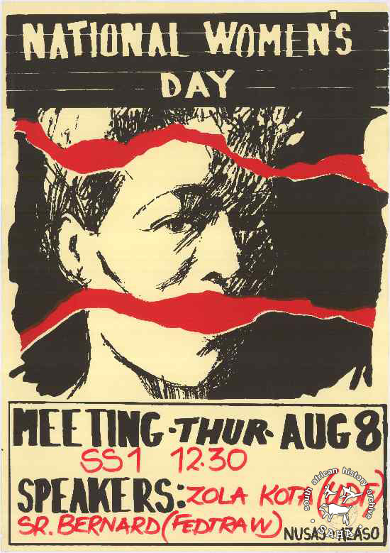 This poster is silkscreened in black and red on yellow. The text reads: "NATIONAL WOMEN'S DAY".