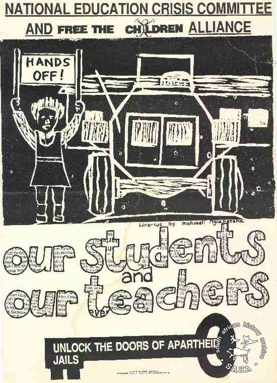 NATIONAL EDUCATION CRISIS COMMITTEE AND FREE THE CHILDREN ALLIANCE: HANDS OFF! our students and our teachers : UNLOCK THE DOORS OF APARTHEID JAILS |