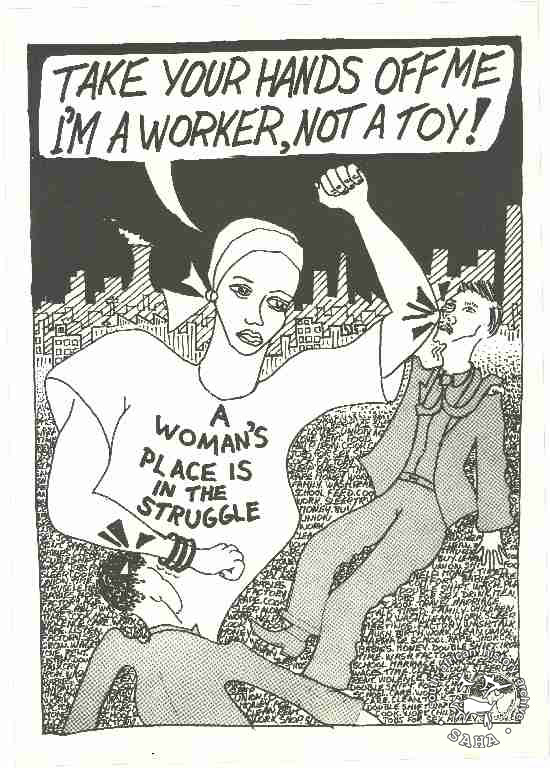 TAKE YOUR HANDS OFF ME I'M A WORKER, NOT A TOY! : A WOMAN'S PLACE IS IN THE STRUGGLE |