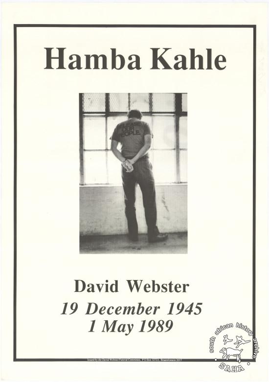 Hamba Kahle : David Webster : 19 December 1945 : 1 May 1989 |