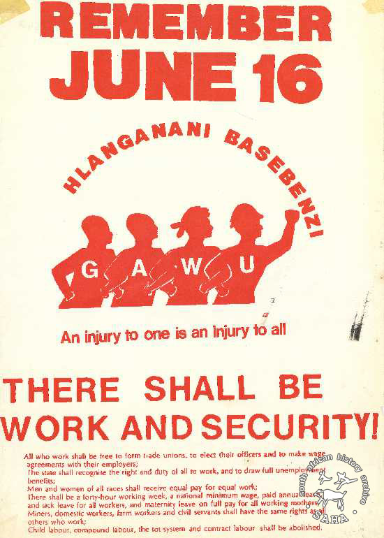REMEMBER JUNE 16 : HLANGANANI BASEBENZI : THERE SHALL BE WORK AND SECURITY! |