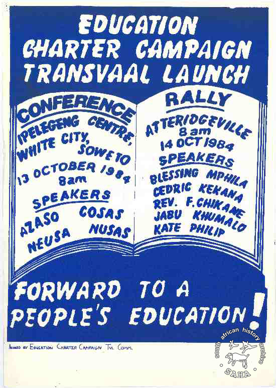 1105 :: EDUCATION CHARTER CAMPAIGN TRANSVAAL LAUNCH : FORWARD TO A PEOPLE'S EDUCATION