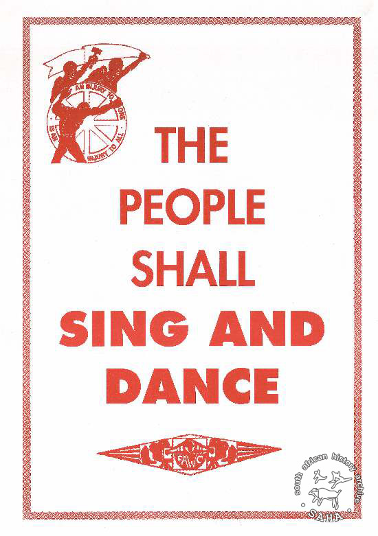 This poster is an offset litho in red. The caption reads: "THE PEOPLE SHALL SING AND DANCE". |