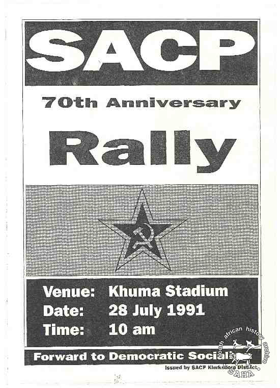 This poster is an offset litho in black. The text reads: "SACP : 70th Anniversary : RALLY" |