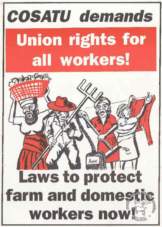 1231 :: COSATU demands : Union rights for all workers! : Laws to protect farm and domestic workers now!