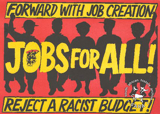 FORWARD WITH JOB CREATION : JOBS FOR ALL! : REJECT A RACIST BUDGET! |