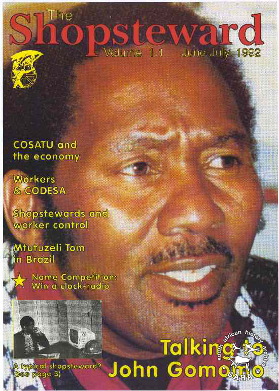 ► 1262 :: The Shopsteward : Volume 1.1 June-July 1992 : Talking to John Gomomo