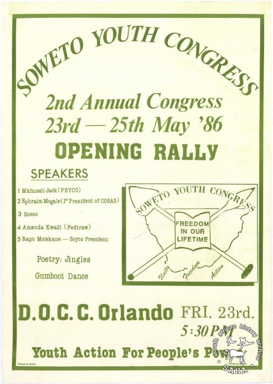 1369 :: SOWETO YOUTH CONGRESS : 2nd Annual Congress : 23rd-25th May '86 : OPENING RALLY