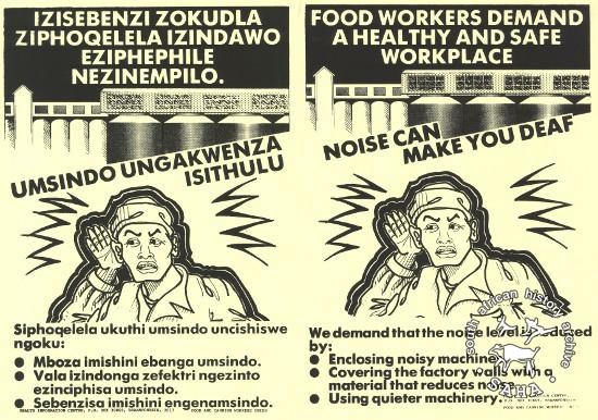 1397 :: IZISEBENZI ZOKUDLA ZIPHOQELELA IZINDAWO EZIPHEPHILE NEZINEMPILO : UMSINDO UNGAKWENZA ISITHULU FOOD WORKERS DEMAND A HEALTHY AND SAFE WORKPLACE : NOISE CAN MAKE YOU DEAF