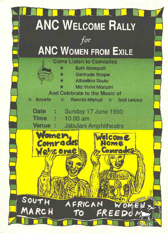 ANC WELCOME RALLY for ANC WOMEN FROM EXILE |