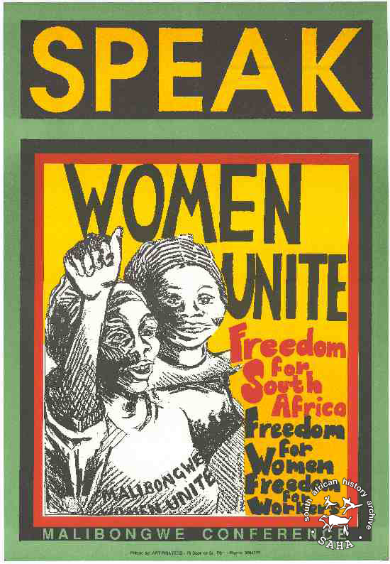 SPEAK : WOMEN UNITE : Freedom for South Africa : Freedom for Women : Freedom for Workers : MALIBONGWE CONFERENCE |