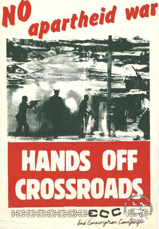 NO apartheid war : HANDS OFF CROSSROADS |