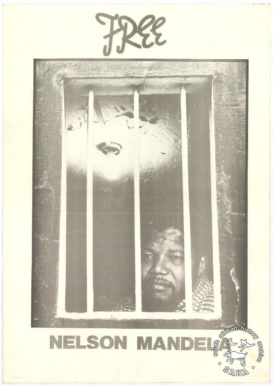 This is an offset litho poster, source and date unknown. The text reads: "FREE NELSON MANDELA". This poster was digitised by Specialised Archival Solutions in 2009. |