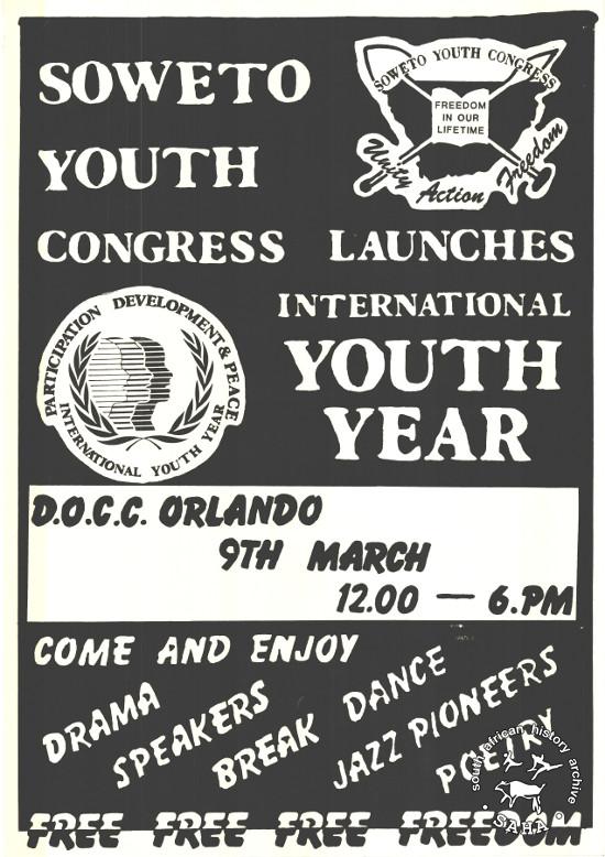 SOWETO YOUTH CONGRESS LAUNCHES INTERNATIONAL YOUTH YEAR |