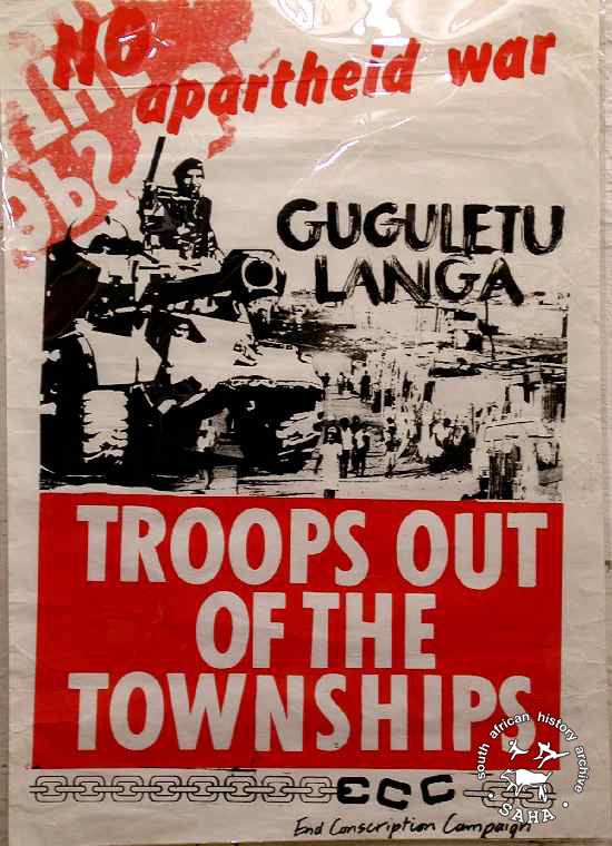 NO apartheid war: GUGULETHU LANGA TROOPS OUT OF THE TOWNSHIPS |
