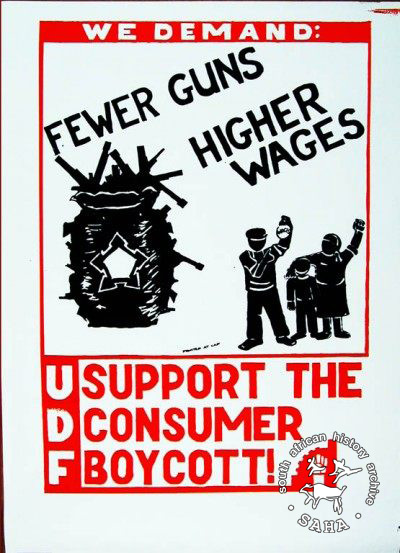 WE DEMAND: FEWER GUNS : HIGHER WAGES : UDF : SUPPORT THE CONSUMER BOYCOTT! |