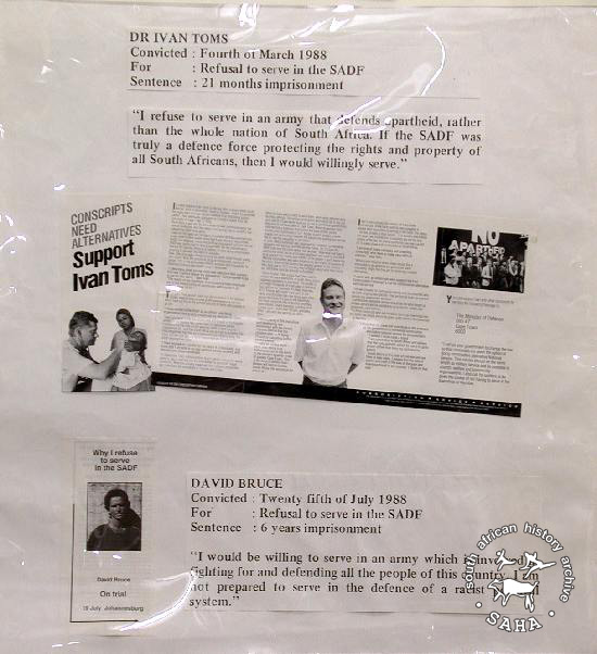 ► 2870 :: CONSCRIPTS NEED ALTERNATIVES: SUPPORT TOM IVANS:Why I refuse to serve in the SADF