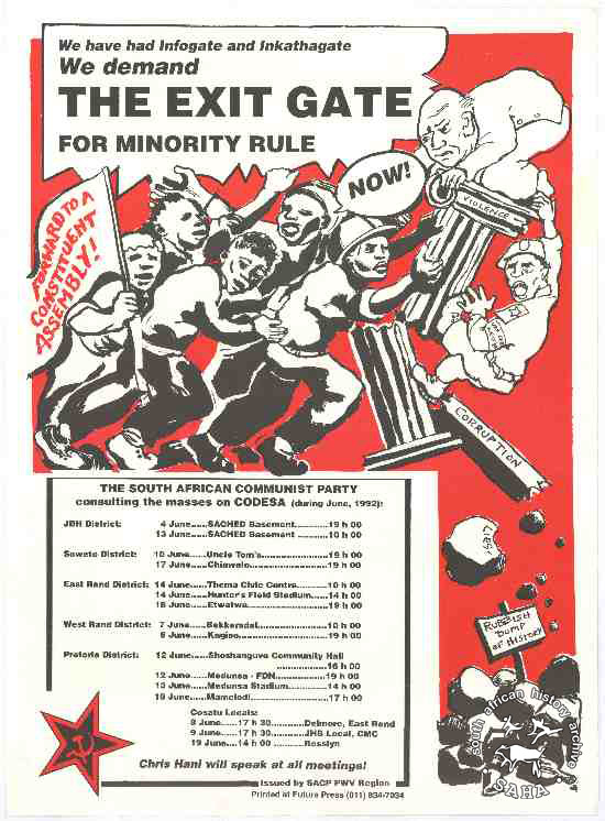 This poster is done in red, black and white and includes graphics and text. The text reads: " WE HAVE HAD INFOGATE AND INKATHAGATE : WE DEMAND THE EXIT GATE FOR MINORITY RULE".