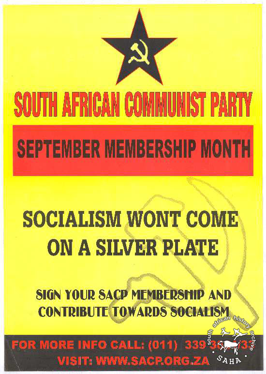 South African Communist Party : September Membership Month : Socialism wont come on a silver plate |