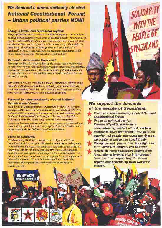 Solidarity with the People of Swaziland : We demand a democratically elected National Constitutional Forum |