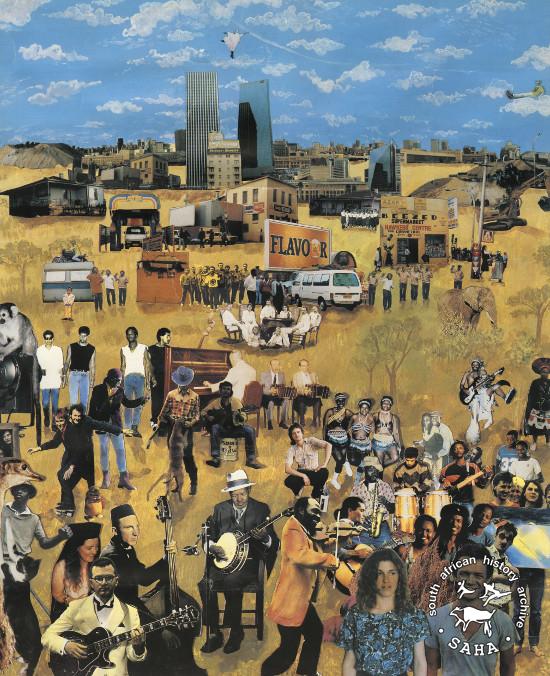 This is an offsite litho poster in full colour, issued by Shifty Records as part of a calendar for 1989. The poster is a collage of images of people associated with Shifty Records, including Shifty staff, artists and spaces. A high resolution digital image was donated by Toni Gottlieb for SAHA's Shifty Records Legacy Archive Project. This image was digitised by ORMS in 2014. Included in the SAHA physical and virtual exhibitions 'What you won't hear on the radio', developed to mark the 30th birthday of Shifty Records and the 25th anniversary of the Voƫlvry tour. |