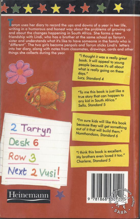 This is a digital image of the back cover of Julie Frederikse's book "The Diary Without A Key", published by Heinemann, South Africa in 1994. This item was digitised by Specialised Archival Solutions in 2015 for inclusion in Julie Frederikse's 'Author's Reflection' for the new edition of "The Unbreakable Thread: non-racialism in South Africa". Also included in the SAHA online repository 'Tracing the unbreakable thread: non-racialism in South Africa today' |