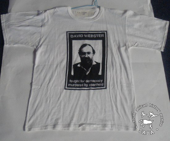 DAVID WEBSTER fought for democracy murdered by apartheid (front) Hamba Kahle (back) |