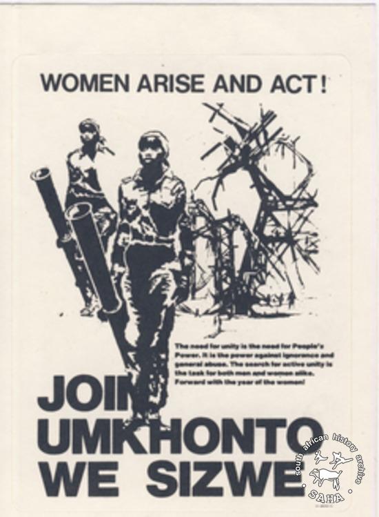 WOMEN ARISE AND ACT! JOIN UMKHONTO WE SIZWE |