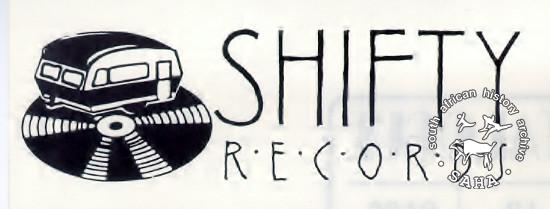 This is a black and white logo of Shifty Records with a drawing of the Shifty Mobile Studio caravan on a vinyl record; date unknown. Included in the SAHA physical and/or virtual exhibitions 'What you won't hear on the radio', developed to mark the 30th birthday of Shifty Records and the 25th anniversary of the Voƫlvry tour. |