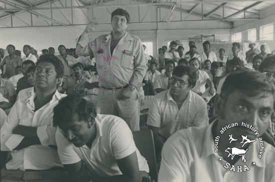 Strike meeting during dispute between SAPREF (B.P. and Shell) and the CWIU |