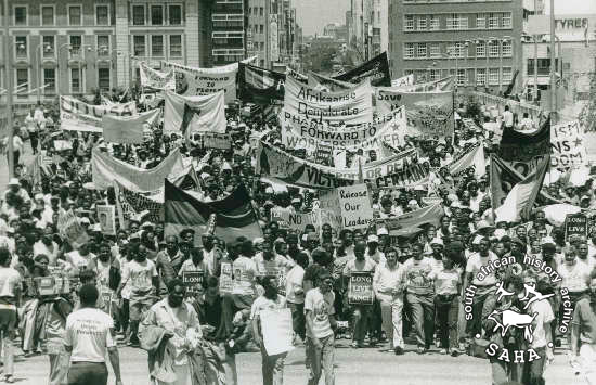 COSATU/NACTU march to protest against the Labour Relations Act (LRA) in Johannesburg, October 1989. |