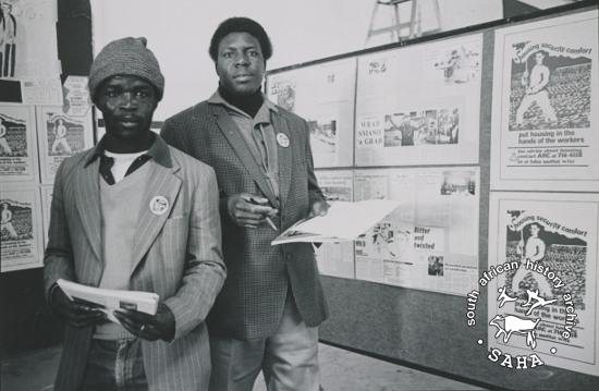 This black and white photograph of two delegates at a FOSATU education workshop in 1985 was taken by an unknown photographer. This photograph was digitised by Africa Media Online (AMO) in 2009.