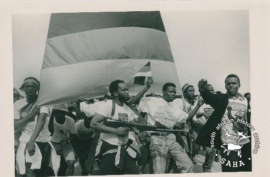 This black and white photograph of an African National Congress (ANC) rally in Soweto in 1989 was taken by Paul Weinberg for Afrapix. This photograph was digitised by Africa Media Online (AMO) in 2009. |