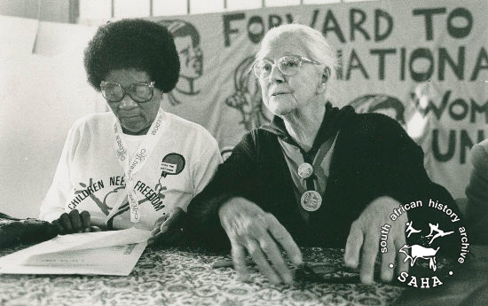 Albertina Sisulu and Helen Joseph at a FEDTRAW meeting |