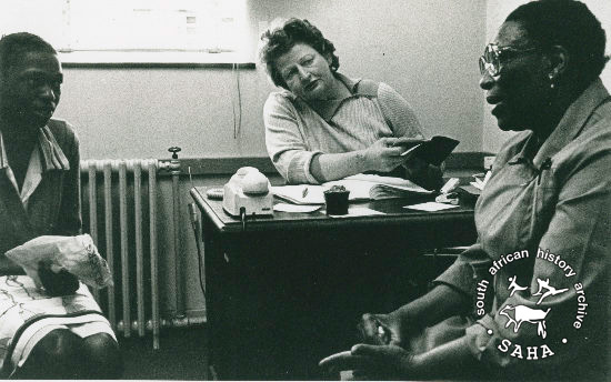 Sheena Duncan in the Johannesburg Office. No date. |
