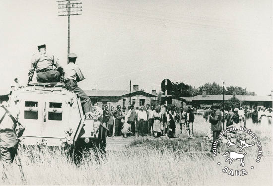 24.3.2 :: Sharpeville: police armoured car and crowd before the shootings.