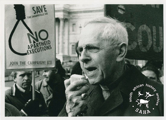 Bishop Trevor Huddleston with protestors at a rally in London. N.d. |