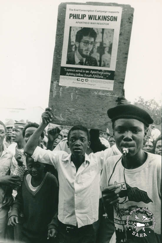 Youths display poster in support of Philip Wilkinson, P.E. N.d. |
