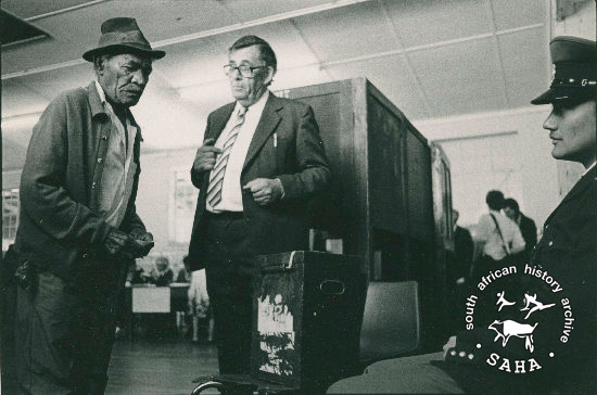 ► 7.1.1 :: Voter casting his ballot at the "Coloured" election in Johannesburg, August 1984.