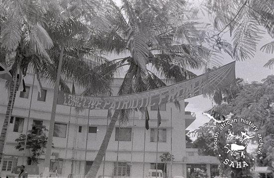 Banner with 'Long Live Patriotric Front' at the Non-Aligned meeting in Maputo, 1978 |
