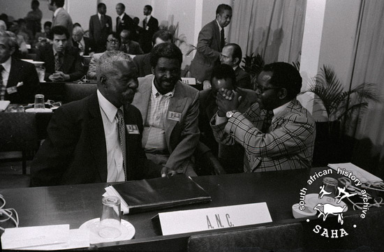 ANC delegates Oliver Tambo and Moses Mabida inside the hall at the Non-Aligned Conference in Maputo |