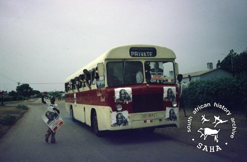 ZAPU supporters being transported by bus during the 1980 election campaign in Harare |