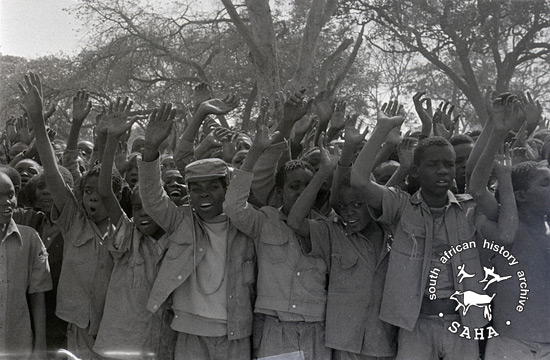 Young boys showing the ZAPU sign at JZ Camp in 1978 |