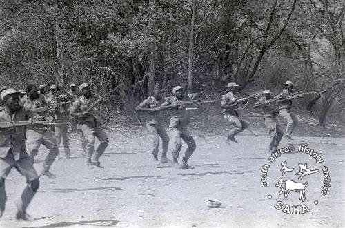 ZPRA cadres during bayonet charge practice in Freedom Camp |