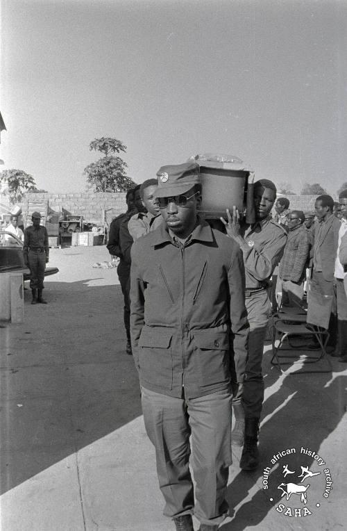 3B_32_12 :: Pall bearers carrying the coffin of Nikita Mangena, individuals identified Lookout Masuku